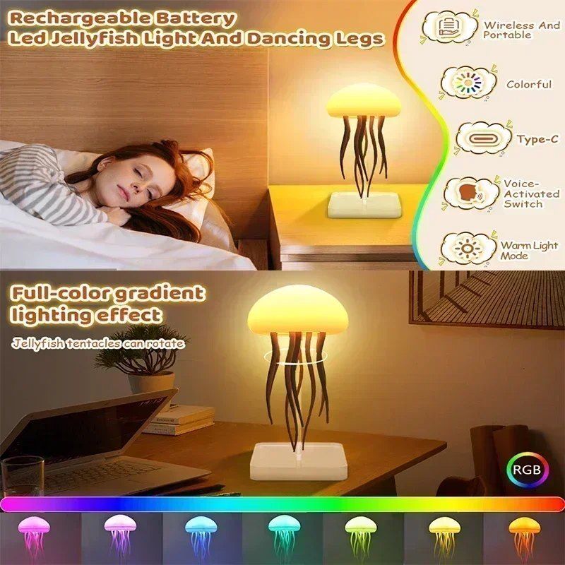 Lâmpada de água-viva fofa: Esta lâmpada de luz de peixe gelatinoso traz a tranquilidade do oceano para sua casa com seu movimento de natação realista e efeitos de iluminação gradientes de ciclo automático coloridos, criando um ambiente subaquático sereno em qualquer ambiente.