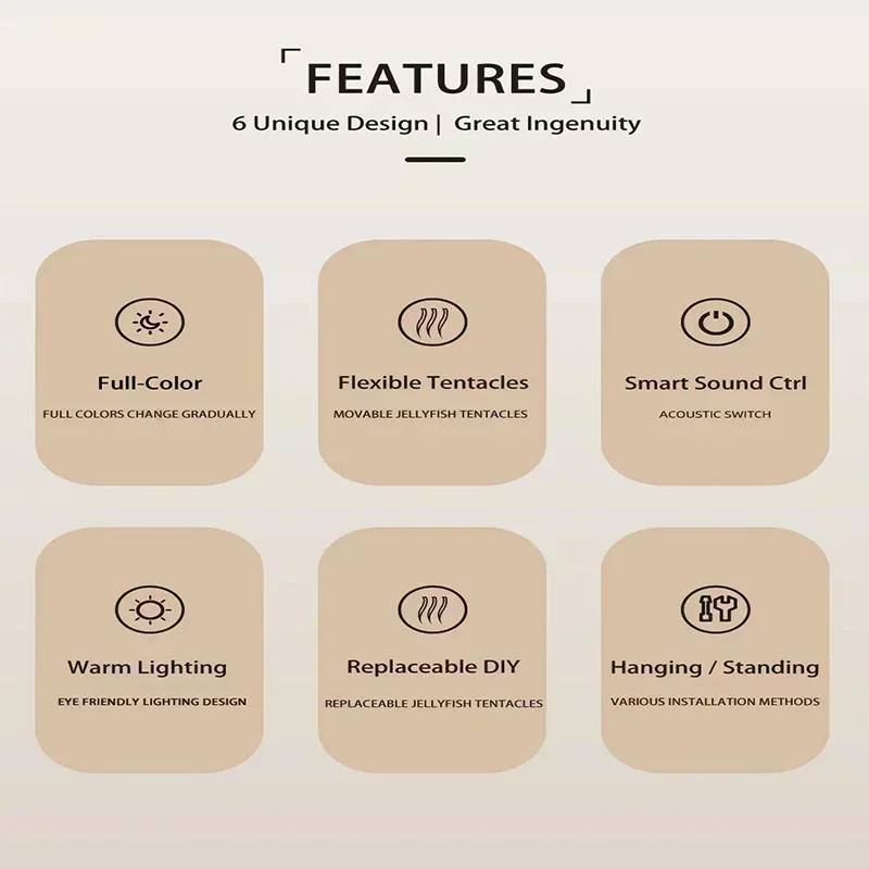 Adoráveis presentes: O modelo de água-viva realista nada silenciosamente e cria um agradável efeito de aquário. As águas-vivas que nadan silenciosamente criam uma atmosfera de mar profundo calma e tranquila, adequada para o ambiente doméstico ou de escritório. A luz de água-viva é um presente ideal para adultos, crianças e pessoas especiais.
